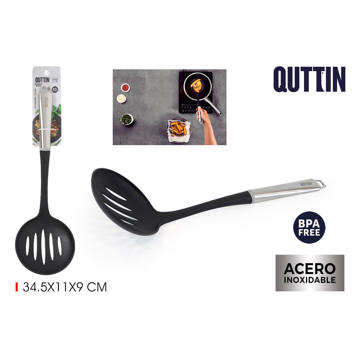 Si vous aimez prendre soin de chaque détail de votre maison et d'être à la dernière mode en matière de produits qui vous rendront la vie plus facile, achetez Écumoire Quttin Acier 34,5 x 11 x 9 cm (24 Unités) au meilleur prix.