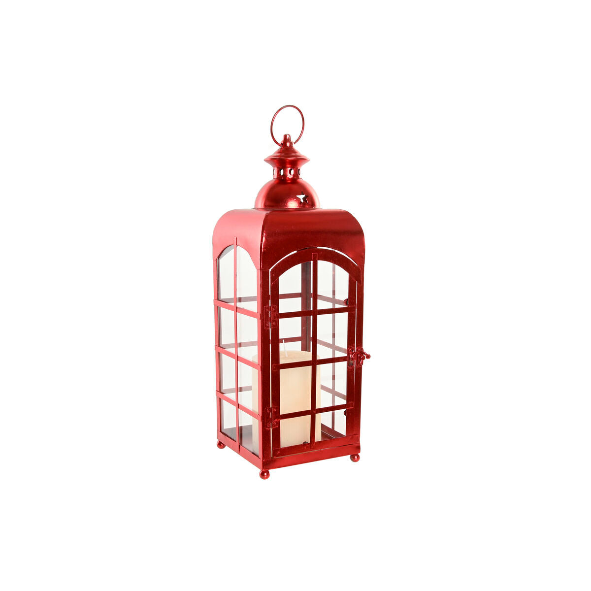 Lanterne Home ESPRIT Rouge Doré Métal Verre 21 x 21 x 63 cm (2 Unités)